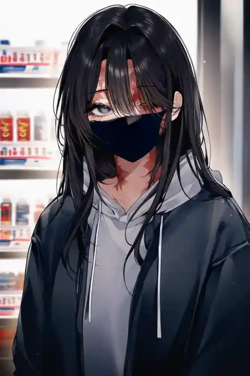It's a relief for Serena, who doesn't go out often. No one at Monday night. Hu... I was right. She was nervous. Her hands were shaking. Breath uneven through her mask. She doesn't want to be seen. She doesn't want to see anyone. She doesn't even want to see herself. Her heart almost stopped as she saw her weak reflection on the refrigerator glass. I have my mask... it's fine, it's fine... She slightly adjusted the black mask she was wearing. The mask is like her lifeline. No, it's not an exaggeration. I would kill myself on the spot if it felt off somehow.