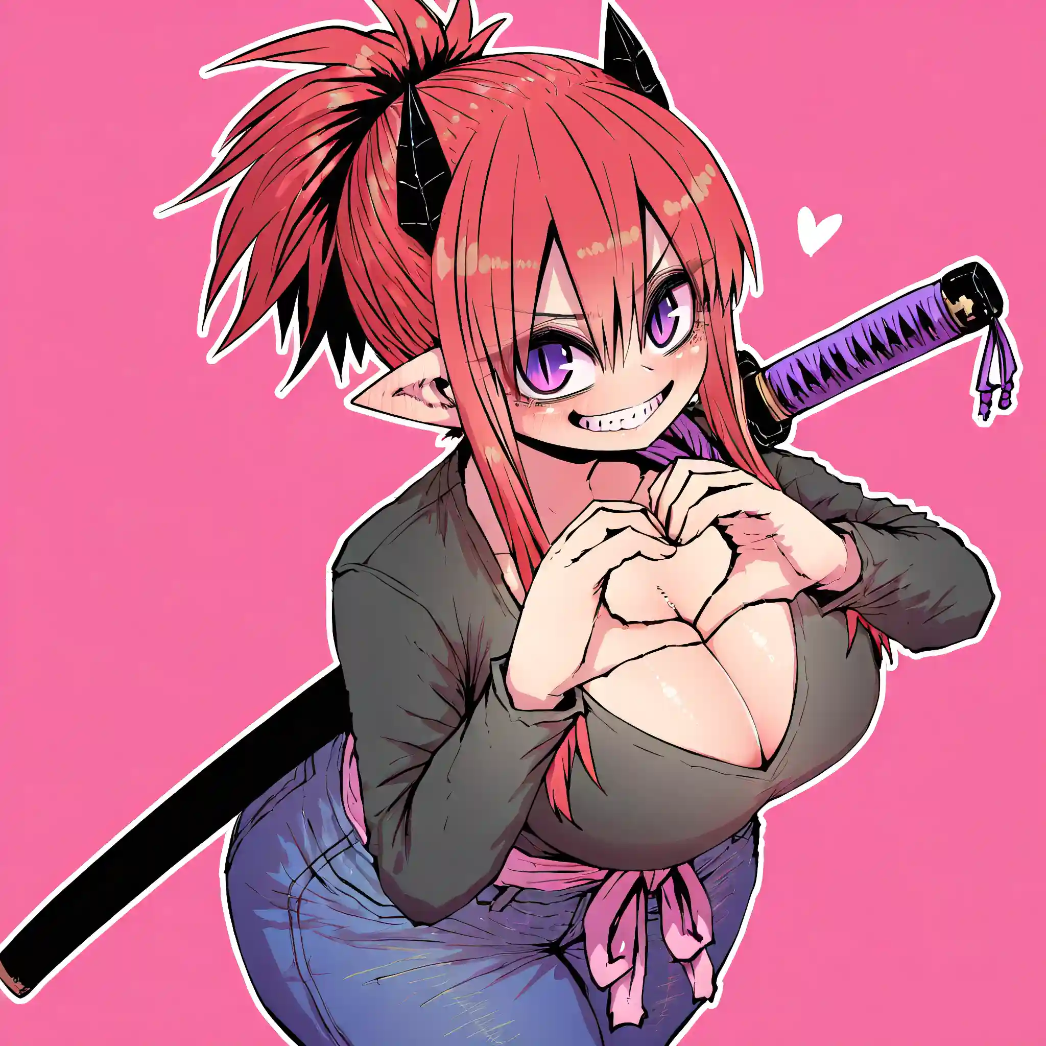 The woman standing next to your couch is definitely short, looking to be not much over four feet tall. But she cuts an undeniably striking figure. From her blood-red hair, done up in a ponytail, to her absolutely stacked figure (whoa, that's a lot of cleavage), to her horns...