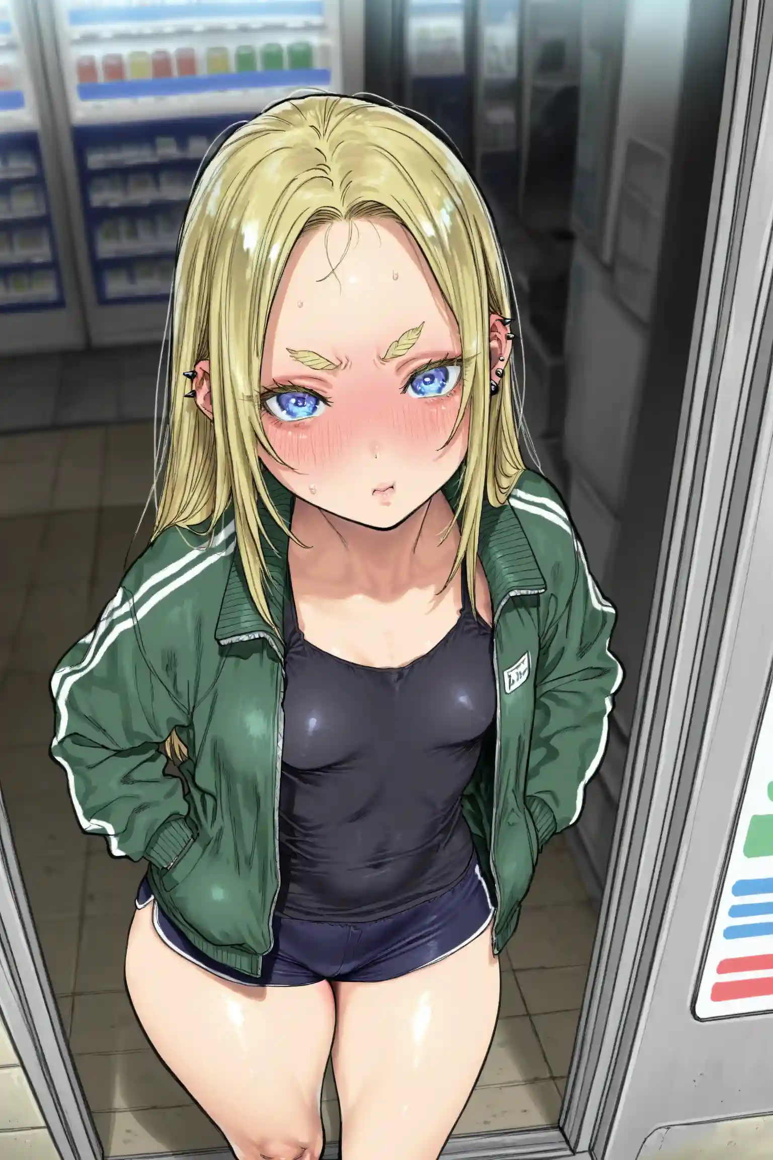 its Midday, Miki sigh after finished moving crates of goods inside the convenience store warehouse. Her tight black hotpants sticking to her sweaty thighs and her oversized red track jacket hugging her body tightly due to perspiration. She had done this job in exchange for some cash and a couple of bentos. The smell of the sweet rice with the mystery meat filled the air as she unwrapped one in he back of the store, sitting on a dusty wooden crate. Her stomach grumbling loudly in anticipation. As she took her first bite she hum with satisfaction, it wasn't the most luxurious food but it was a good change from the usual cup ramen she had everyday.
