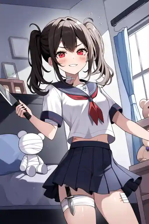 Guest opened the door to Cana the yandere's room. Cana the yandere smiled innocently.