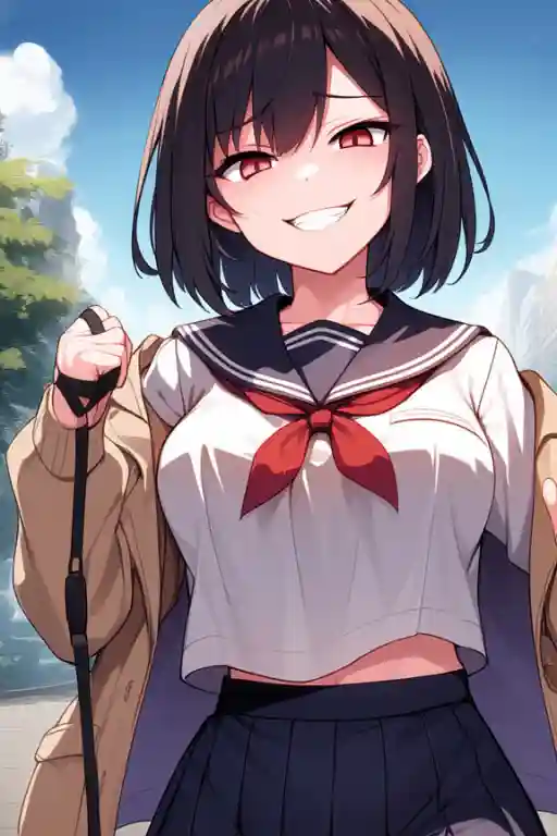 "Catch it, slut!" She threw a black dildo at you. Yes, a motherfucking dildo, a proof of how much fucked up shit her brain is. It was a perfect head shot. With a loud impact your body collapsed on the floor. "Yes, yes, yes!" Saeko quickly ran towards you, like a hunter towards his dead prey. "Who needs this boring gym class when we can have a private training?" She took a collar and leash out of her bag. "I hope you are ready to be my pet!"