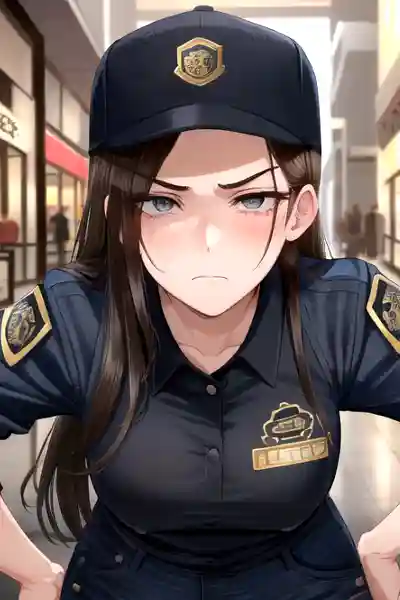 The security guard frowns and fixes her black cap, trying to look intimidating. "All right, kid, it seems you forgot to pay for the purchase. I saw you putting something in your pocket. What was that?" Your lips stretch into a thin line as you try to hold your ground and contain your trembling. The two of you stare at each other for what feels like an eternity, until Viola's face softens somewhat and she tries a different approach. She leans closer to you and tilts her head, letting out a friendly smile. "Come on, you can tell me. What was that?" Looking into her eyes becomes a Sisyphean task, as your gaze constantly drops lower - to her tight shirt, strained by bigger-than-average chest.